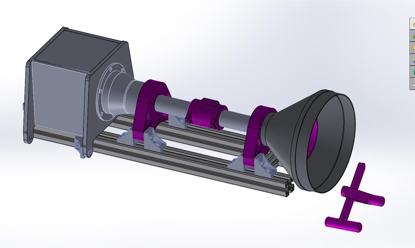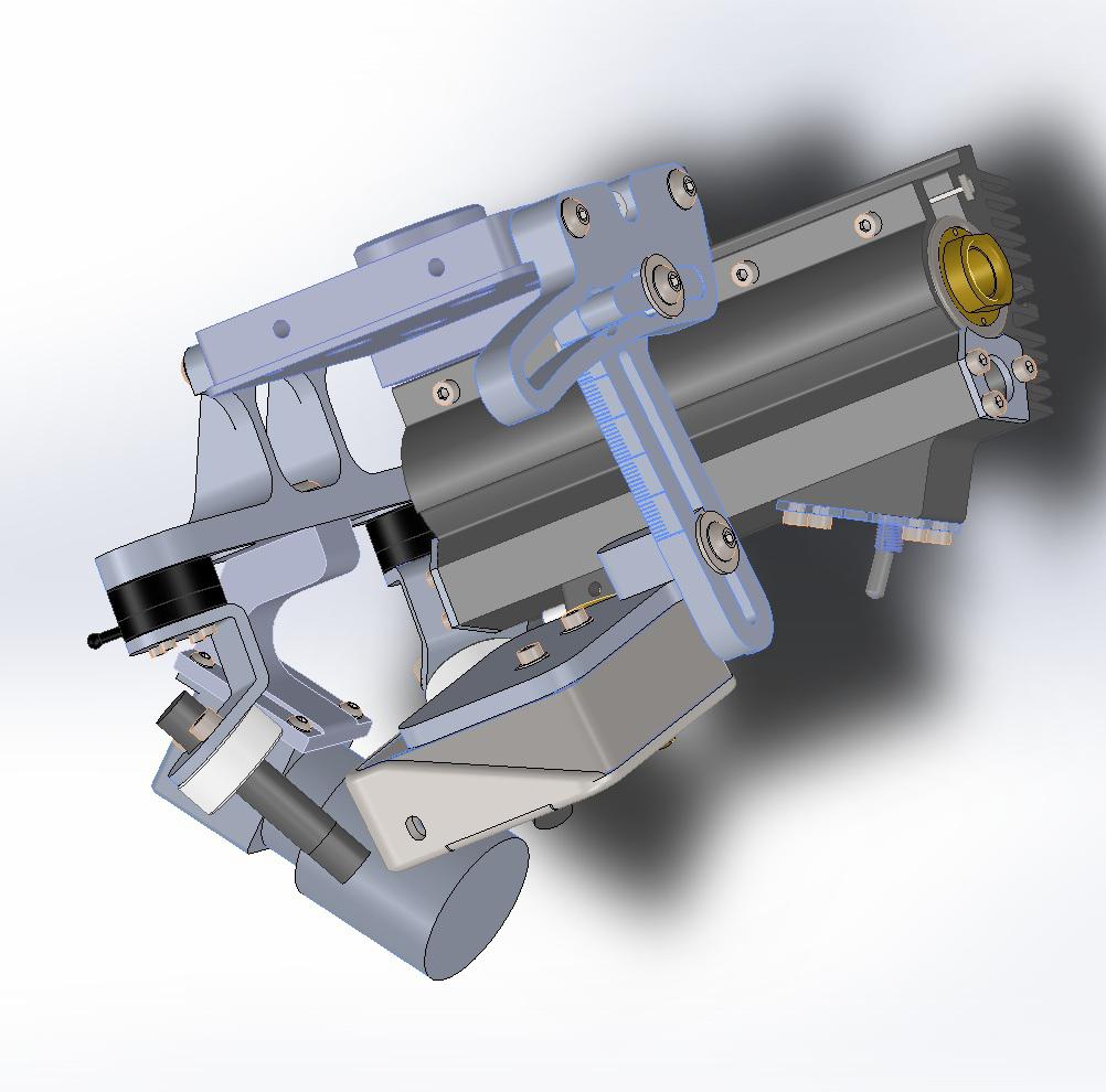 L'ensemble est constitué de plusieurs tronçons mélant pièces en aluminium usinées CNC et pièces en impression 3D réalisées en interne intégrant entre autres des micros de haute sensibilité . La conception modulaire de l'ensemble permet de régulièrement ajouter de nouvelles fonctionnalités.